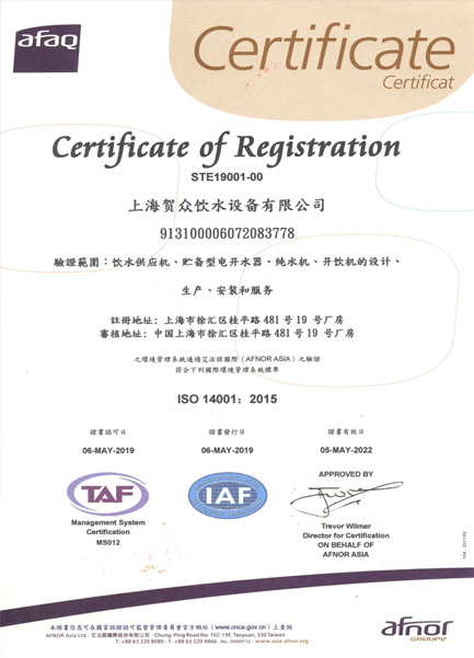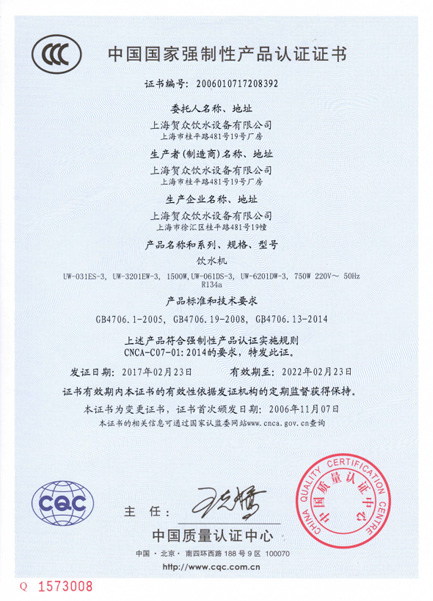 東莞市賀一飲水設(shè)備有限公司為賀眾牌飲水設(shè)備東莞授權(quán)總代理商,證號(hào)24019,負(fù)責(zé)上海賀眾飲水設(shè)備所產(chǎn)制的賀眾牌相關(guān)產(chǎn)品的銷(xiāo)售以及售后服務(wù)。